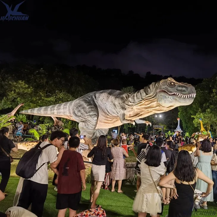 Mae hwn yn fodel Tyrannosaurus Rex anferth 12-metr o hyd, ac rydyn ni'n gwneud y cyfan â llaw, felly mae'n cymryd 25-30 diwrnod i wneud deinosor. Mae'r Tyrannosaurus Rex hwn yn defnyddio gyriant modur servo gwell, felly gellir rheoli'r symudiad yn fwy cywir.